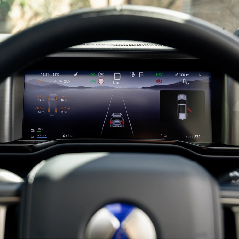 Serious driving isn’t done on a touchscreen. That’s why the DENZA B5’s cockpit is adorned with physical controls for all your critical driving functions – including a rising gear selector, buttons for diff locks, drive modes, and more.